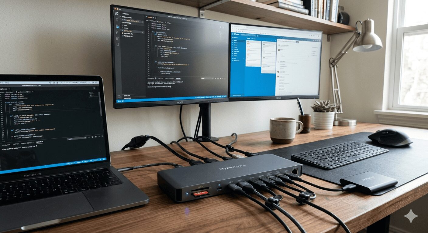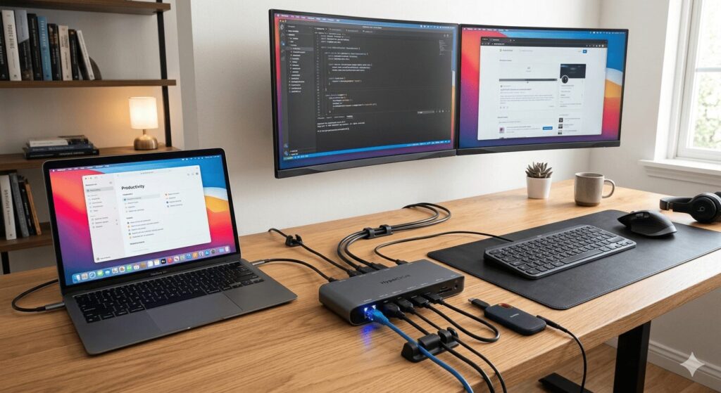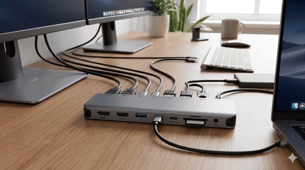 しかし、あるアイテムをデスクに導入したことで、その悩みは一瞬で吹き飛びました。それが「ドッキングステーション」です。たった1本のケーブルをパソコンに繋ぐだけで、充電からモニター出力、あらゆる周辺機器の接続が完了する魔法のようなデバイス。一度使ったら、もう元の環境には戻れません。