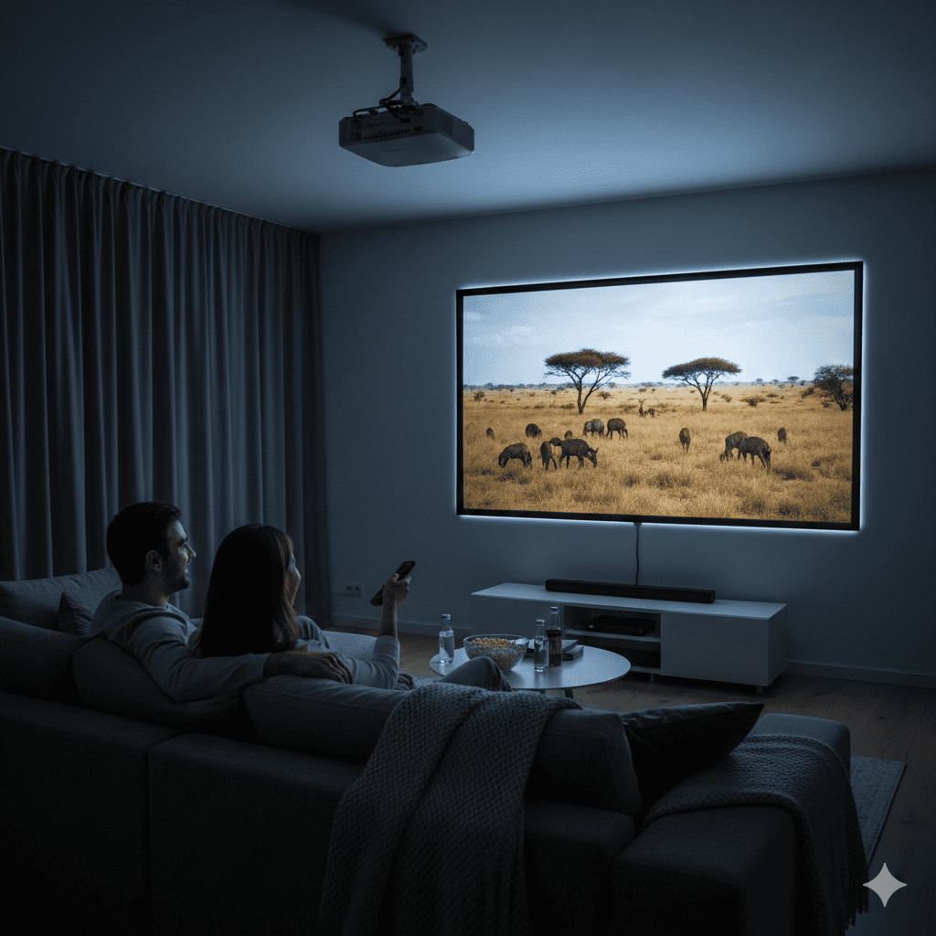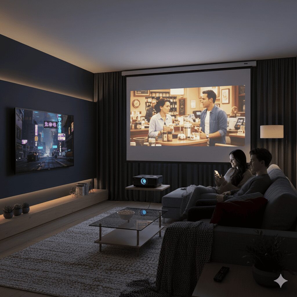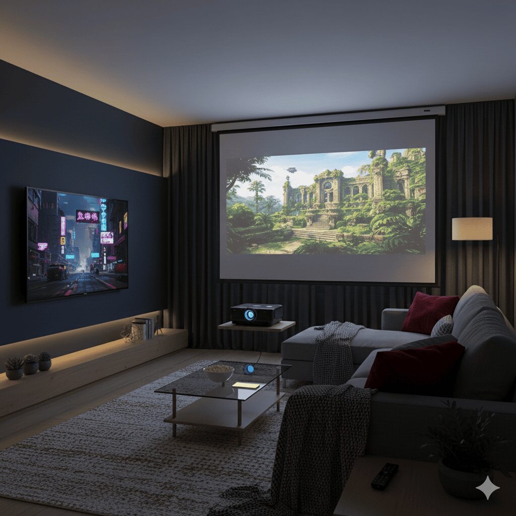 最近、ミニマリストやホームシアター愛好家の間で**「プロジェクターをテレビ代わりに」**するという選択が急速に広まっています。テレビの黒い画面がインテリアを邪魔することもなく、必要な時だけ壁一面に映像を映し出すスタイルは、現代のライフスタイルに非常にマッチしています。
