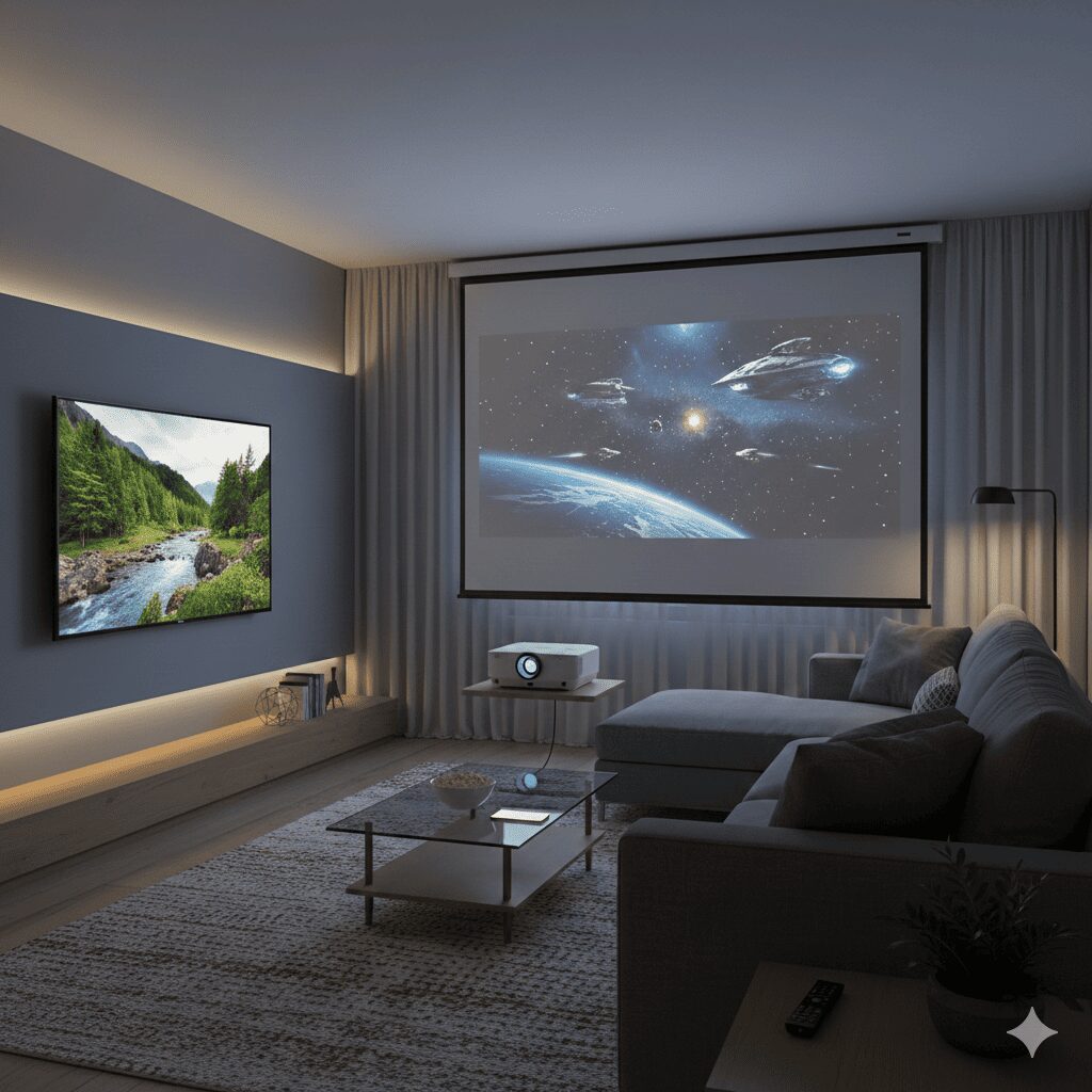 - 1 プロジェクターはテレビと比べて**壁やスクリーンに大画面を映せてインテリアの圧迫感が少なく、夜間の映画・動画視聴に向いている**ため、テレビ代わりとして十分実用的(ただし環境や用途で向き不向きがある)。