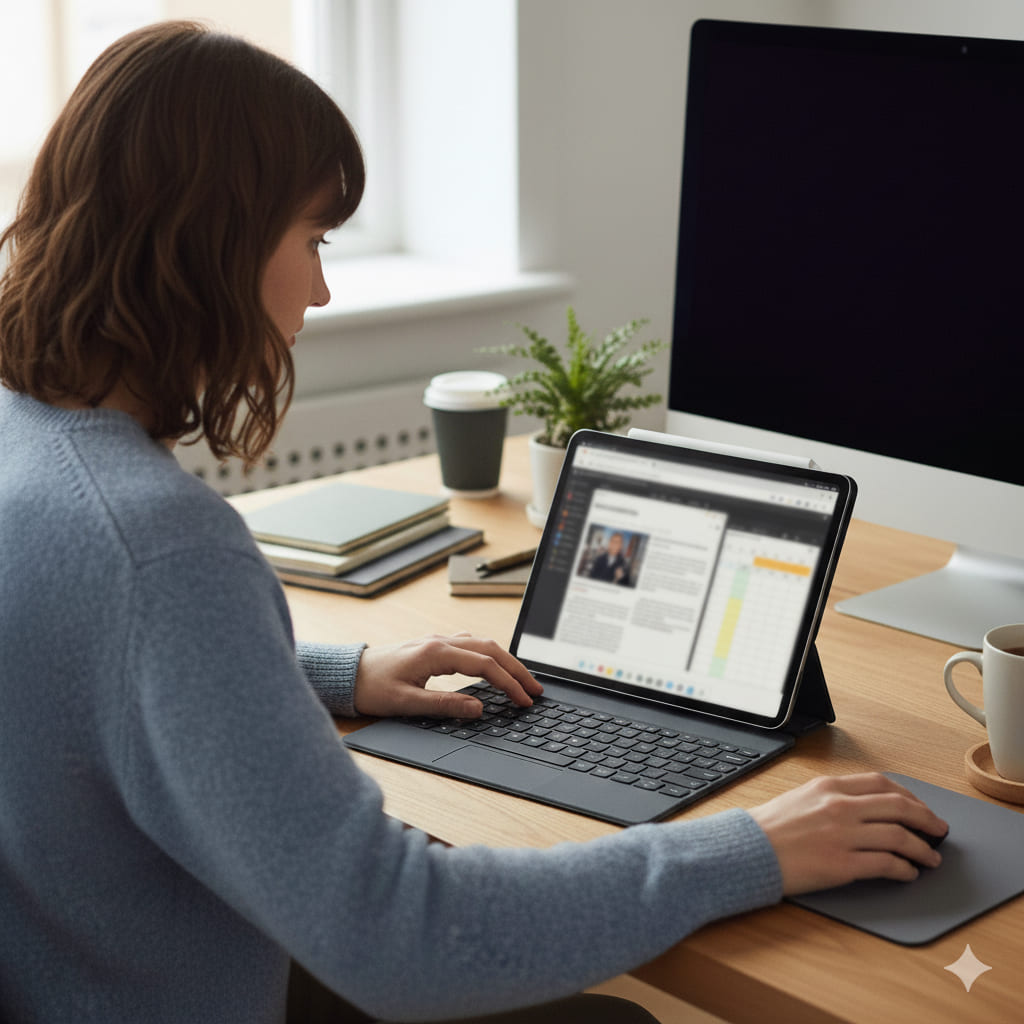 - 物理キーボードの用意:長文の入力やショートカットキーの利用を考えると、ソフトウェアキーボードだけでは効率が著しく落ちます。純正のキーボード(iPadのMagic Keyboardなど)や、Bluetooth接続のキーボードは必須アイテムと言えるでしょう。